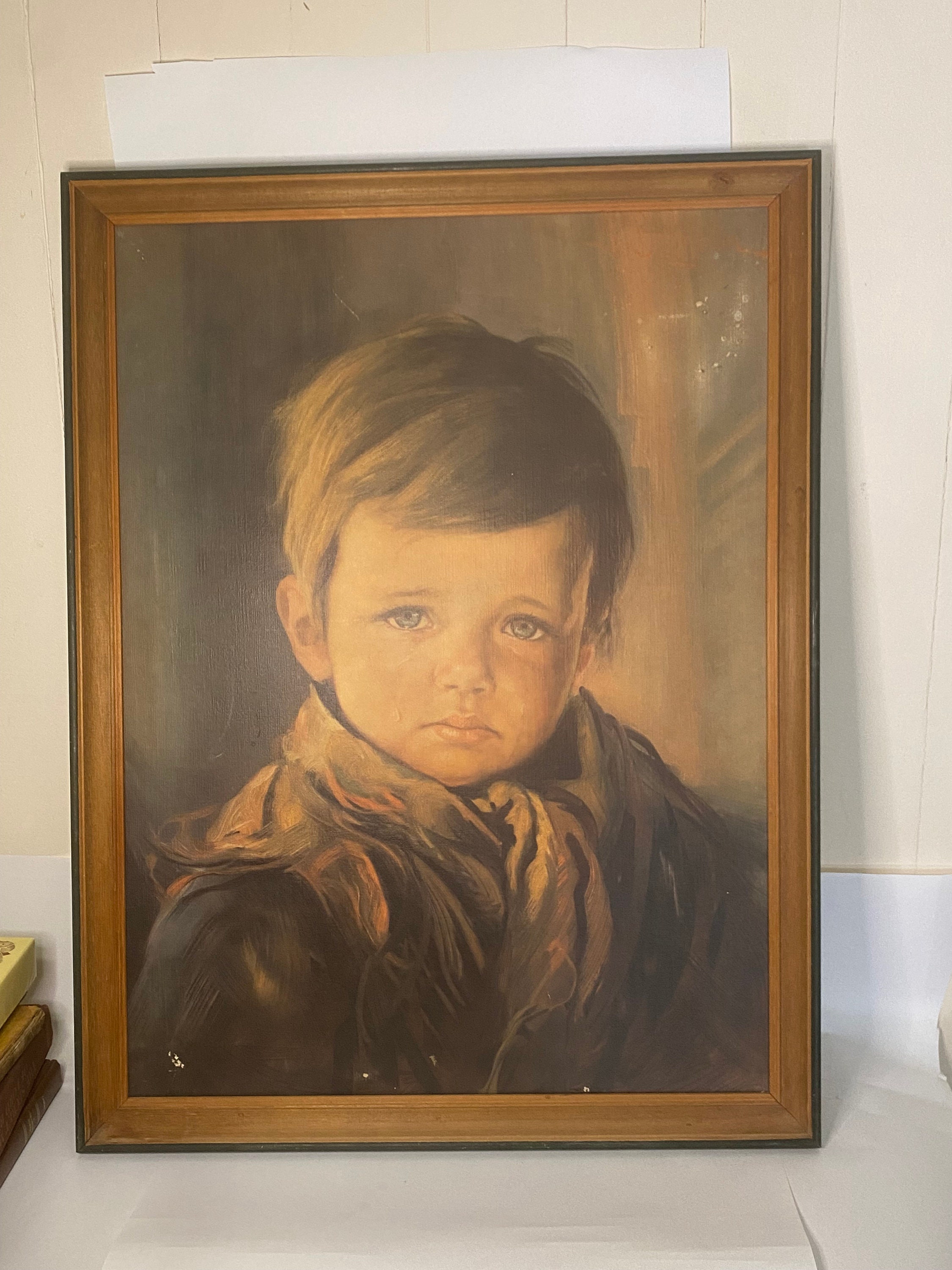 The curse of the Crying Boy. Vintage famous giovanni bragolin crying boy haunted painting print.